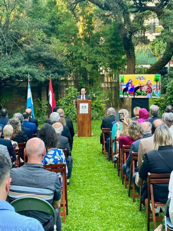 تحت عنوان “طريق السلام والمحبة، طريق العائلة المقدسة في مصر”، نظمت السفارة المصرية في بوينس أيرس فعالية للترويج الثقافي والسياحي لمسار العائلة المقدسة في مصر، والتي حضرها جمع كبير من القيادات الدينية المسيحية والإسلامية بالأرجنتين، ورؤساء وأعضاء البعثات الدبلوماسية، وكبرى شركات السياحة الأرجنتينية، فضلاً عن عدد من المسؤولين الأرجنتينيين في مقدمتهم السفير/ إدواردو فاريلا سفير الأرجنتين السابق لدى مصر والذي تم تعيينه مؤخراً في منصب مدير إدارة الشرق الأوسط وشمال أفريقيا بالخارجية الأرجنتينية.