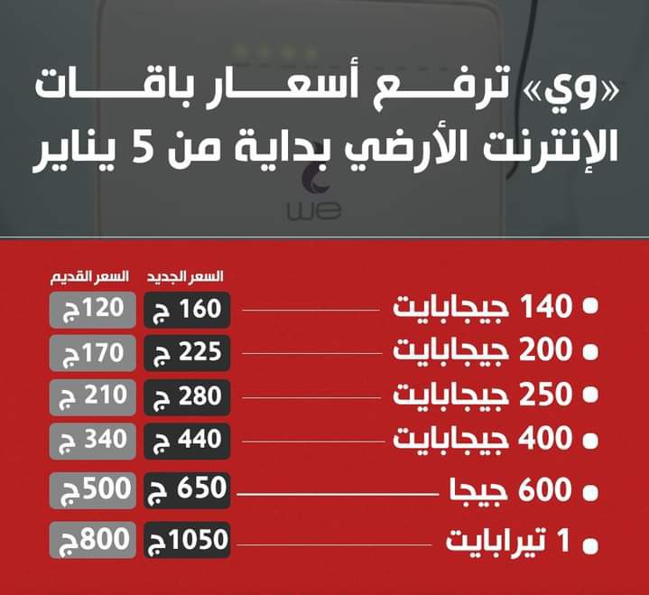 ▪️ باقة 600 جيجا إلى 650 جنيهًا بدلًا من 500 جنيه..