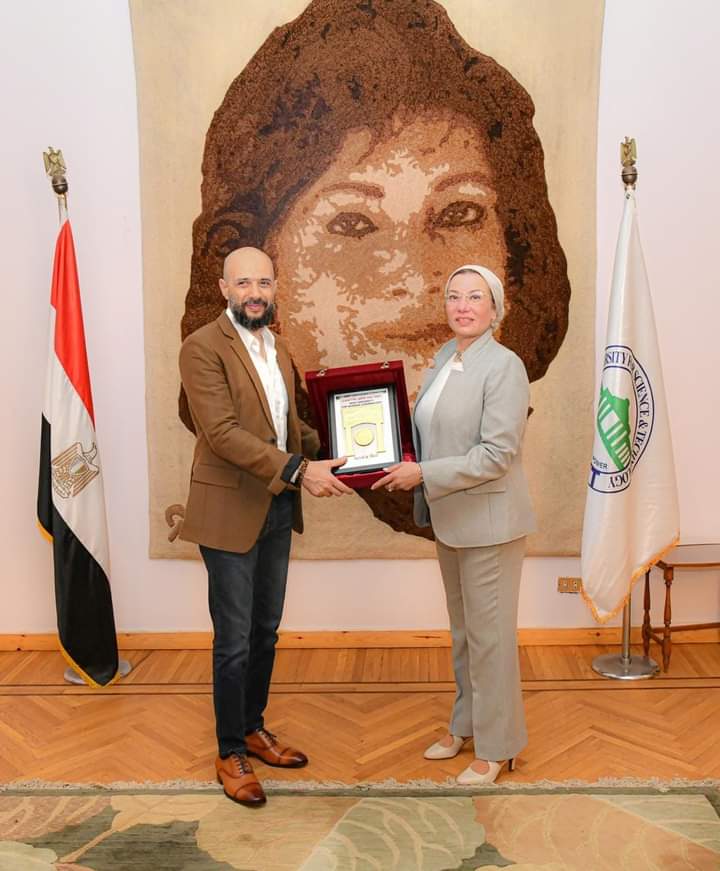 تكريم وزيرة البيئة على جهودها الدؤوبة فى مجال العمل البيئى ودعمها للمرأة وتقديم التسهيلات اللازمة لدمج المرأة المصرية فى العمل البيئى