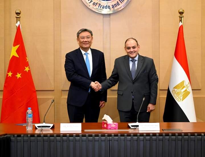 عقد المهندس/ أحمد سمير وزير التجارة والصناعة جلسة مباحثات موسعة مع / وانج وينتاو وزير التجارة الصيني والوفد المرافق له حيث تم بحث سبل تعزيز التعاون بين البلدين في مختلف المجالات الاقتصادية والاستثمارية والتجارية، حضر اللقاء / لياو ليتشيانج، سفير الصين بالقاهرة، والوزير المفوض التجاري/ يحيي الواثق بالله رئيس التمثيل التجاري، و/ دعاء سليمة، المدير التنفيذي المدير التنفيذي لمركز تحديث الصناعة، و/ يمنى الشبراوي، رئيس قطاع المعالجات التجارية.