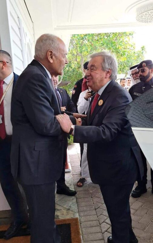 استقبل أحمد أبو الغيط، الأمين العام لجامعة الدول العربية، “أنطونيو جوتيريش” السكرتير العام للأمم المتحدة، وذلك على هامش القمة العربية التي تعقد بالمنامة اليوم 16 الجاري.