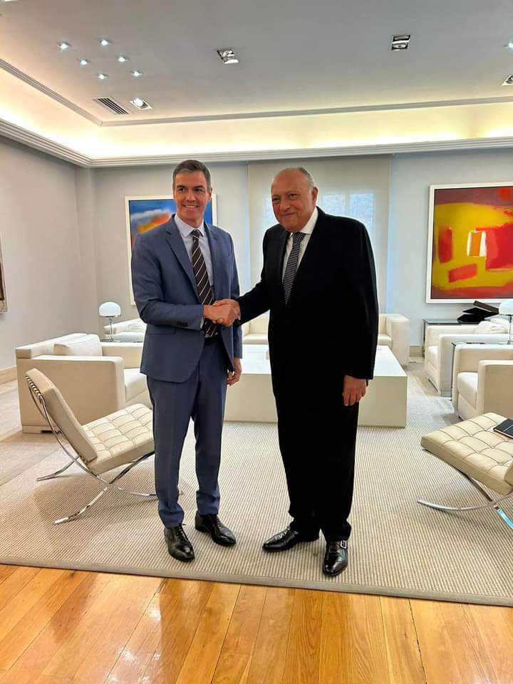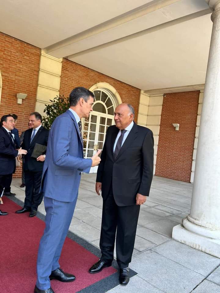 قام سامح شكري وزير الخارجية يومي ٢ و٣ يونيو الجاري بزيارة إلى العاصمة الإسبانية مدريد، التقى خلالها بكل من رئيس حكومة مملكة إسبانيا ” بيدرو سانشيز” ووزير الخارجية “خوسيه مانويل ألباريس”، وذلك للتباحث حول مختلف جوانب العلاقات الثنائية وسبل دفعها، بالإضافة إلى بحث عدد من الموضوعات الإقليمية ذات الأولوية للبلدين وعلى رأسها مستجدات الأوضاع الأمنية والإنسانية في قطاع غزة، والجهود المشتركة لإعادة إيحاء مسار التسوية السياسية للقضية الفلسطينية على أساس حل الدولتين.