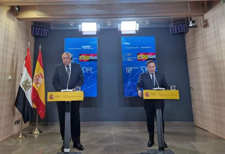 كما أعرب الوزير شكري عن تثمين مصر للقرار التاريخي الذي اتخذه رئيس الحكومة “سانشيز” بالاعتراف بالدولة الفلسطينية، وتطلع مصر لأن تحذو المزيد من الدول الأوروبية حذو إسبانيا، باعتباره ركيزة رئيسية في مسيرة تنفيذ حل الدولتين وتحقيق السلام في المنطقة. وأشار أيضاً إلى تطلع مصر لدعم إسبانيا للتحرك المصري القطري الأمريكي للوصول لاتفاق بين إسرائيل وحماس يؤدي إلى إنهاء الحرب الجارية، فضلاً عن دورها المأمول في حشد الدعم الأوروبي لهذا التحرك.