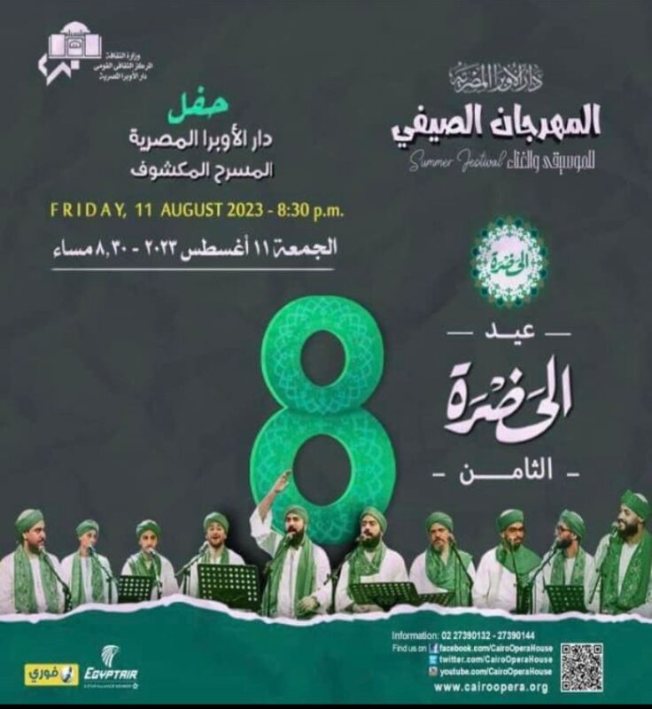 فى ختام فعاليات مهرجان الاوبرا الصيفى : الحضرة تحتفل بعيدها الثامن على المكشوف