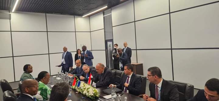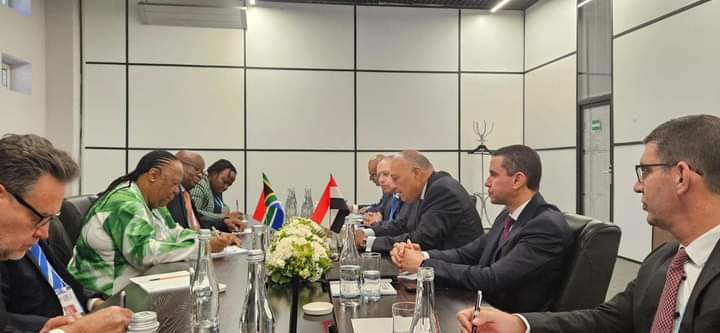 وأضاف السفير أبو زيد، أن الوزيرين أكدا على أهمية تعزيز مستوى التنسيق بين مصر وجنوب افريقيا في كافة قضايا القارة الإفريقية لاسيما الموضوعات ذات الصلة بالاتحاد الإفريقي، وفي مقدمتها انتخابات قيادات المفوضية لعام ٢٠٢٥، وتعزيز الحوكمة والإصلاح المؤسسي. كما تم تناول مُستجدات الأزمة السودانية وأهمية تكثيف العمل المشترك للتوصل إلى حلول تفضي إلى وقف الصراع المسلح. وتم استعراض التطورات في شرق الكونغو الديمقراطية وشمال موزمبيق والجهود الرامية إلى إيجاد حلول عملية قابلة للتنفيذ لمواجهة التحديات التي تعاني منها دول القارة.