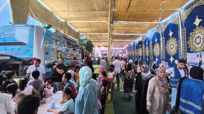 بالإضافة إلى مشاركة الأتوبيس المتنقل التابع لمكتبة مصر العامة والذي يجوب القرى لنشر الوعي والثقافة والوصول لأكبر قدر من المستفيدين بتقديم فقرات ثقافية وفنية ورسم على الوجه استفاد منها ١٥٩ طفل.