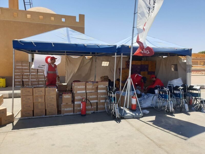 حيث قامت فرق الهلال الأحمر المصري باستجابة فورية بالتواجد على الحدود وإقامة نقاط الخدمات الإنسانية ومساحات صديقة للأطفال لتقديم خدمات الدعم النفسي والصحي، ومساعدة المتضررين للتواصل مع أسرهم وحتى انتقالهم إلى أماكن إقامتهم داخل مصر.