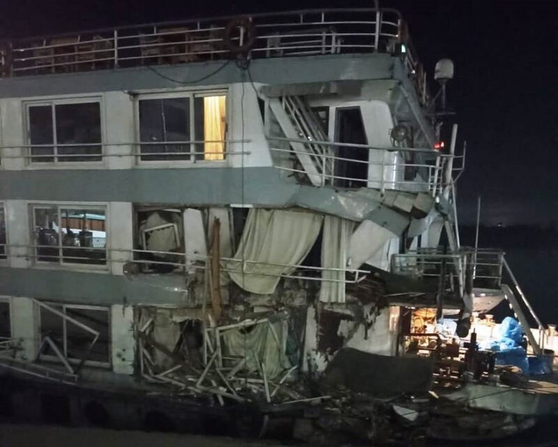 و تمت المعاينة المبدئية للباخرة “نايل ماركيز”، حيث أتضح أن سبب الاصطدام نتيجة انفصال الدفة الإلكترونية بشكل مفاجئ، وسيتم تحويل الباخرة إلى ورشة الصيانة الفنية المختصة للإصلاح وإعادة إبحارها.