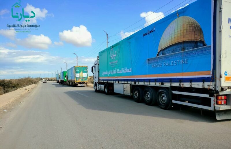 بالتنسيق مع الهلال الأحمر المصري «ديارنا» ترسل قافلة بها 77 طن مساعدات غذائية وخيام وبطاطين الى غزة