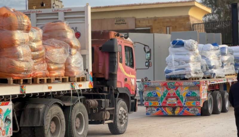 الهلال الأحمر المصري يمُد غزة بسلال غذائية وبطاطين وملابس شتوية عبر قافلة «زاد العزة» الـ 98