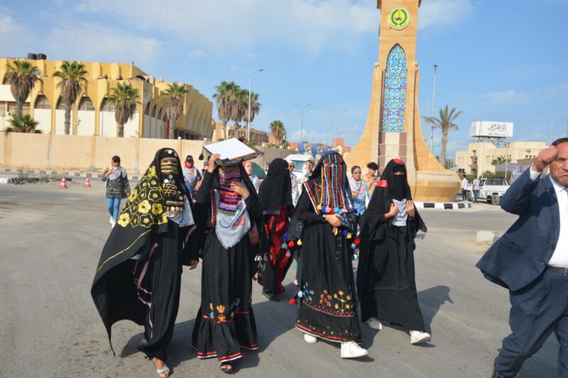 حرصت الفتيات على ارتداء أزيائهن التراثية المُجسدة لهوية محافظات شمال سيناء، جنوب سيناء، الوادي الجديد، فضلا عن مدن”حلايب والشلاتين وأبو رماد” بالبحر الأحمر، مطروح، أسوان.