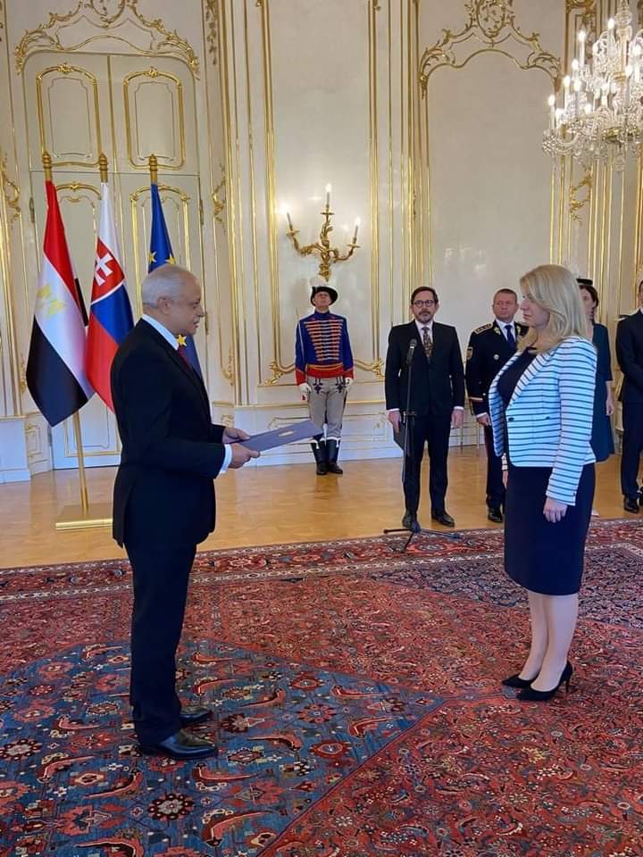 قام السفير/ أيمن كامل سفير جمهورية مصر العربية فى براتسلافا بتقديم أوراق اعتماده يوم ١٥ نوفمبر الجارى إلى / سوزانا تشابوتوفا رئيسة الجمهورية السلوفاكية بالقصر الجمهوري، حيث تم عزف السلام الوطني واستعراض حرس الشرف ورفع العلم المصري فى الساحة الرئيسية وسط العاصمة.