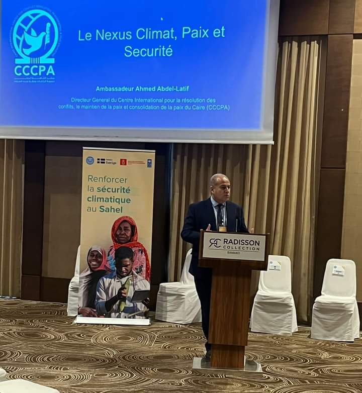 شارك السفير/ أحمد نهاد عبد اللطيف، مدير مركز القاهرة الدولي لتسوية النزاعات وحفظ وبناء السلام، في المنتدى الإقليمي لدول الساحل حول تغير المناخ والسلم والأمن في العاصمة المالية، باماكو خلال الفترة من ٩-١١ نوفمبر الجاري، والذي استضافته الحكومة المالية بالتعاون مع برنامج الأمم المتحدة الإنمائي.