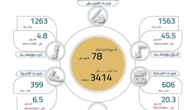 موانئ اقتصادية قناة السويس تستقبل 3414 سفينة بــ 78 مليون طن حمولات خلال 2023 رغم التحديات العالمية