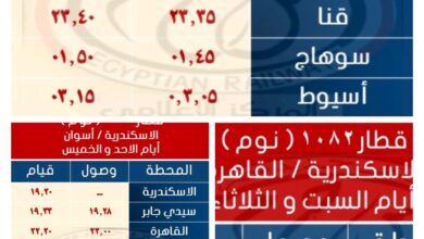 كتبت: وفاء الشابورى تزامناً مع انتهاء موسم الصيف تعلن الهيئة القومية لسكك حديد مصر عن ايقاف التشغيل الصيفى لقطارات القاهرة…