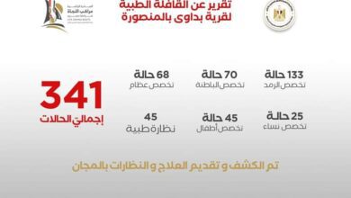 الكشف على 341 مواطنا ضمن القافلة الطبية بقرية بداوي بالمنصورة بالتعاون مع “راعي مصر” في…